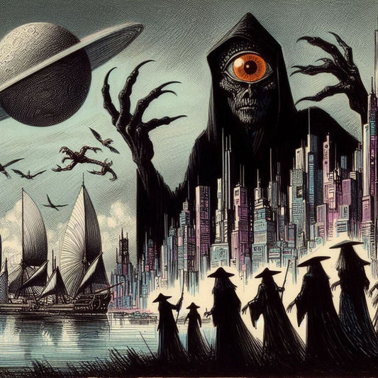 En la oscuridad de la noche, una figura colosal se alza, su...