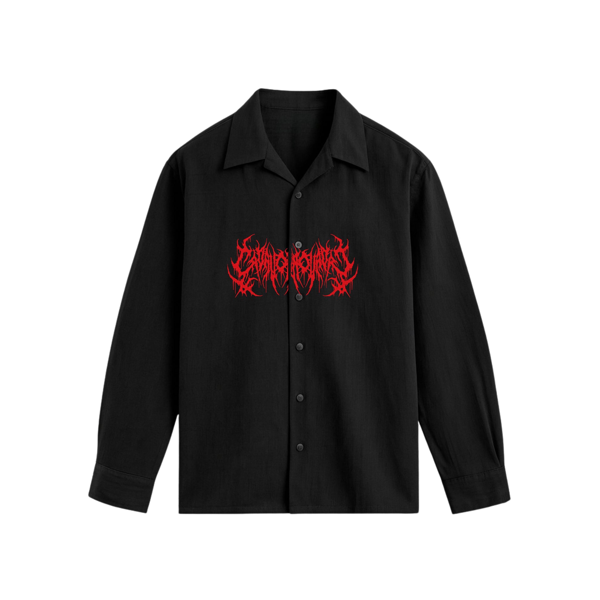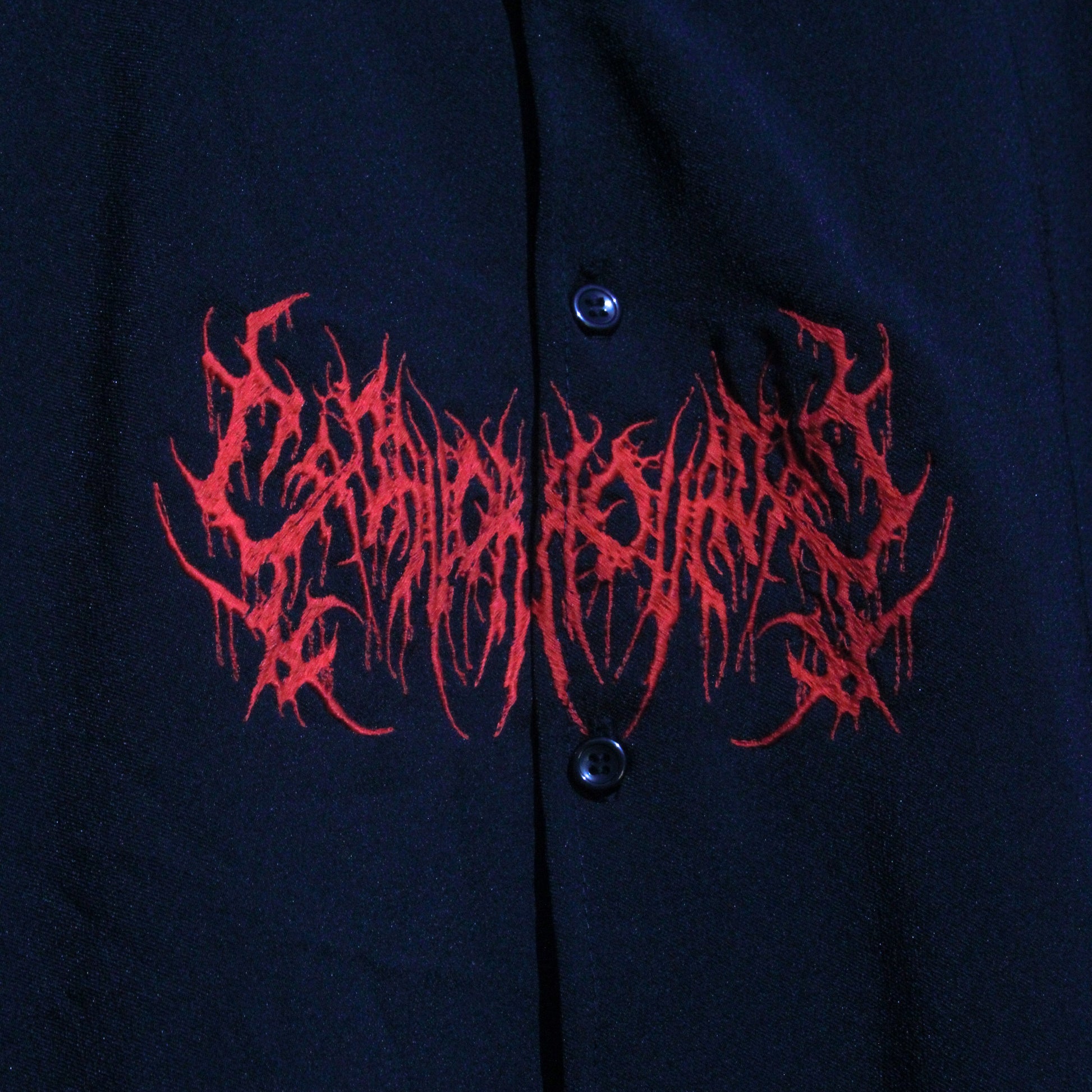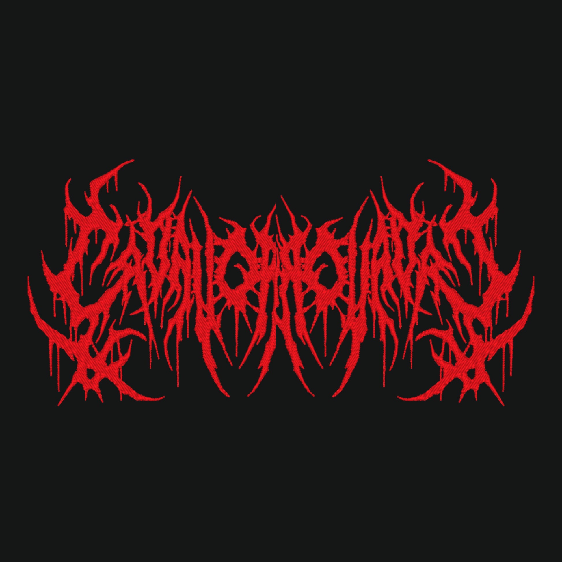 - Bordado (20x10) con topografía deathcore al centro color rojo