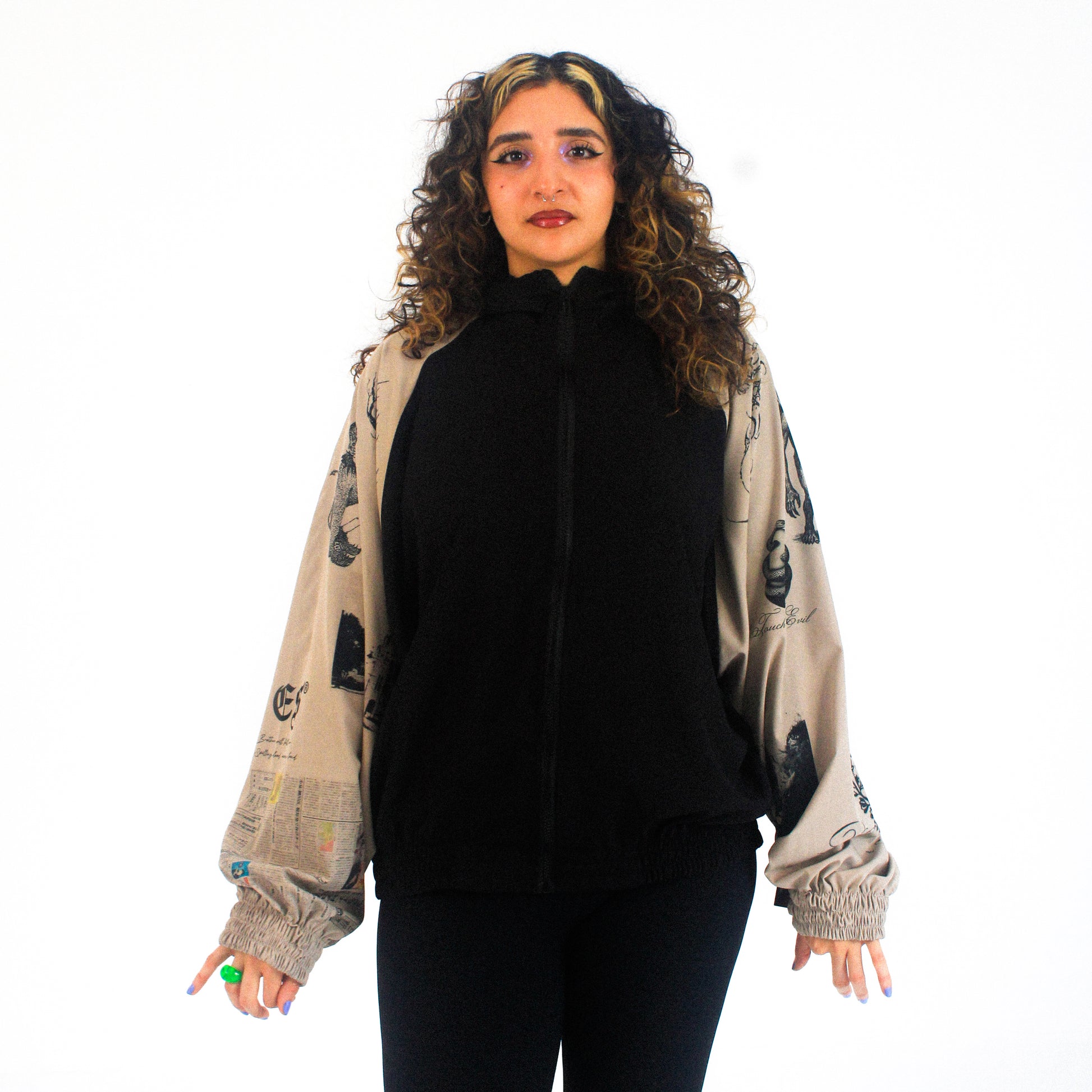 - Estampado: Liso Negro / Mangas Beige