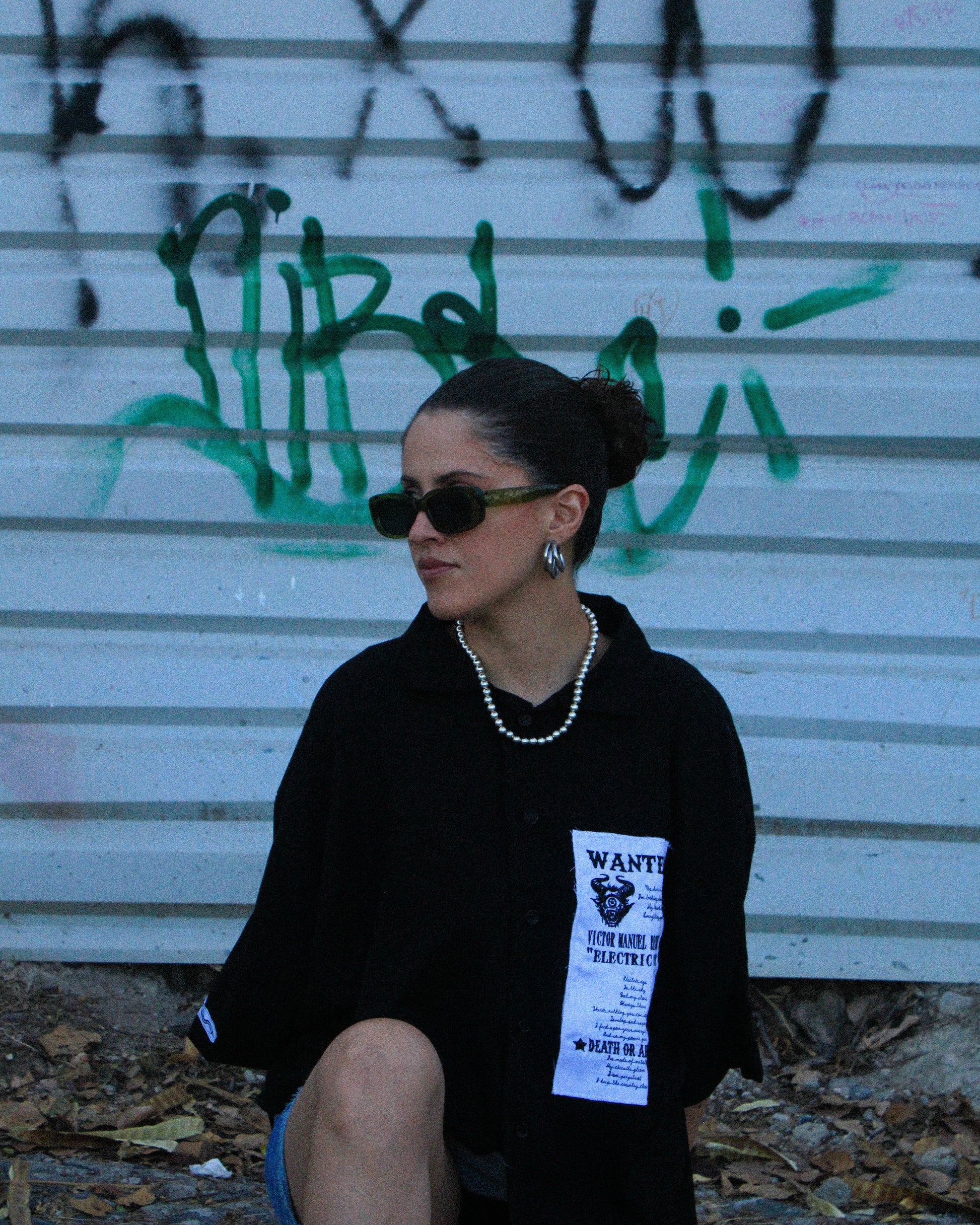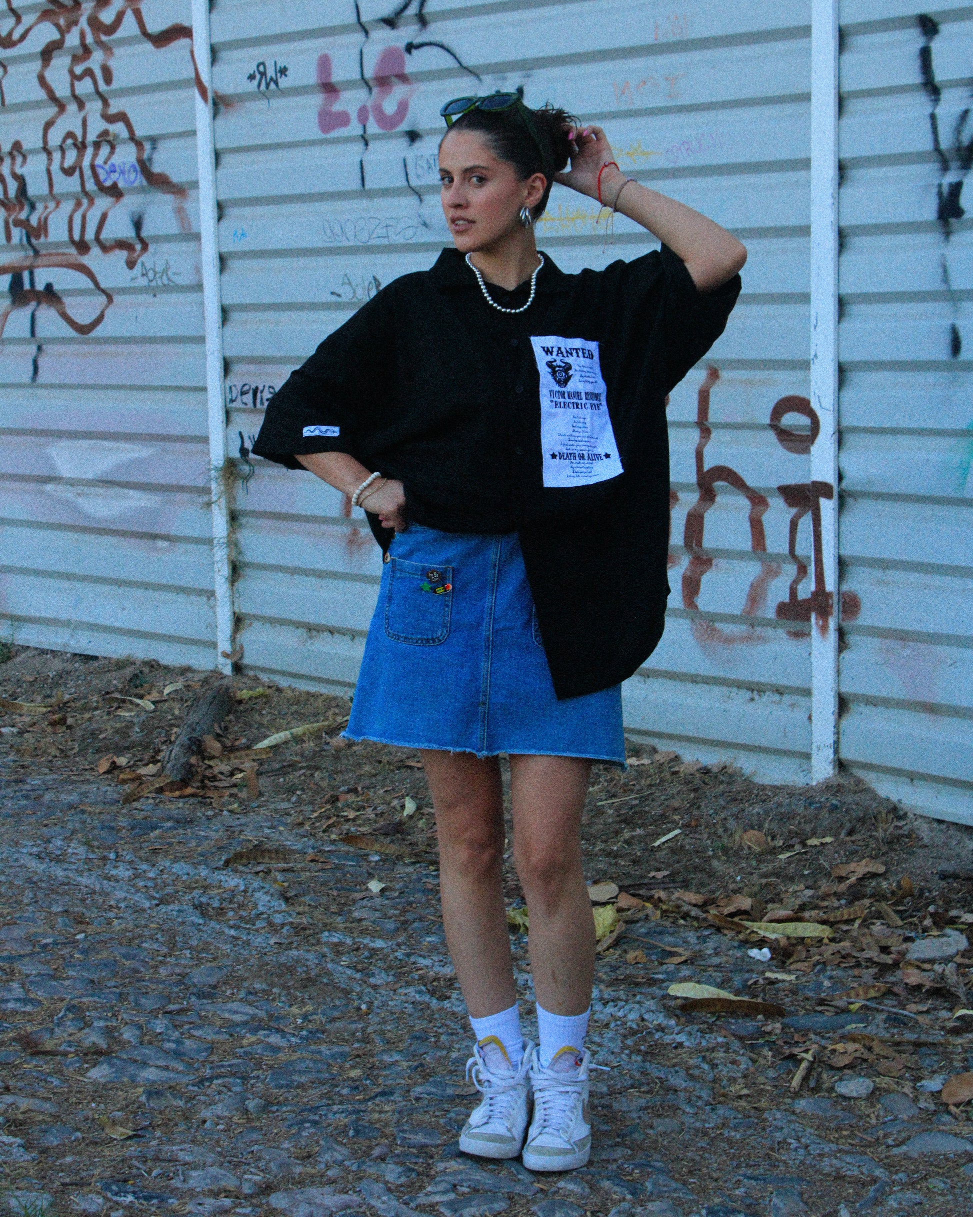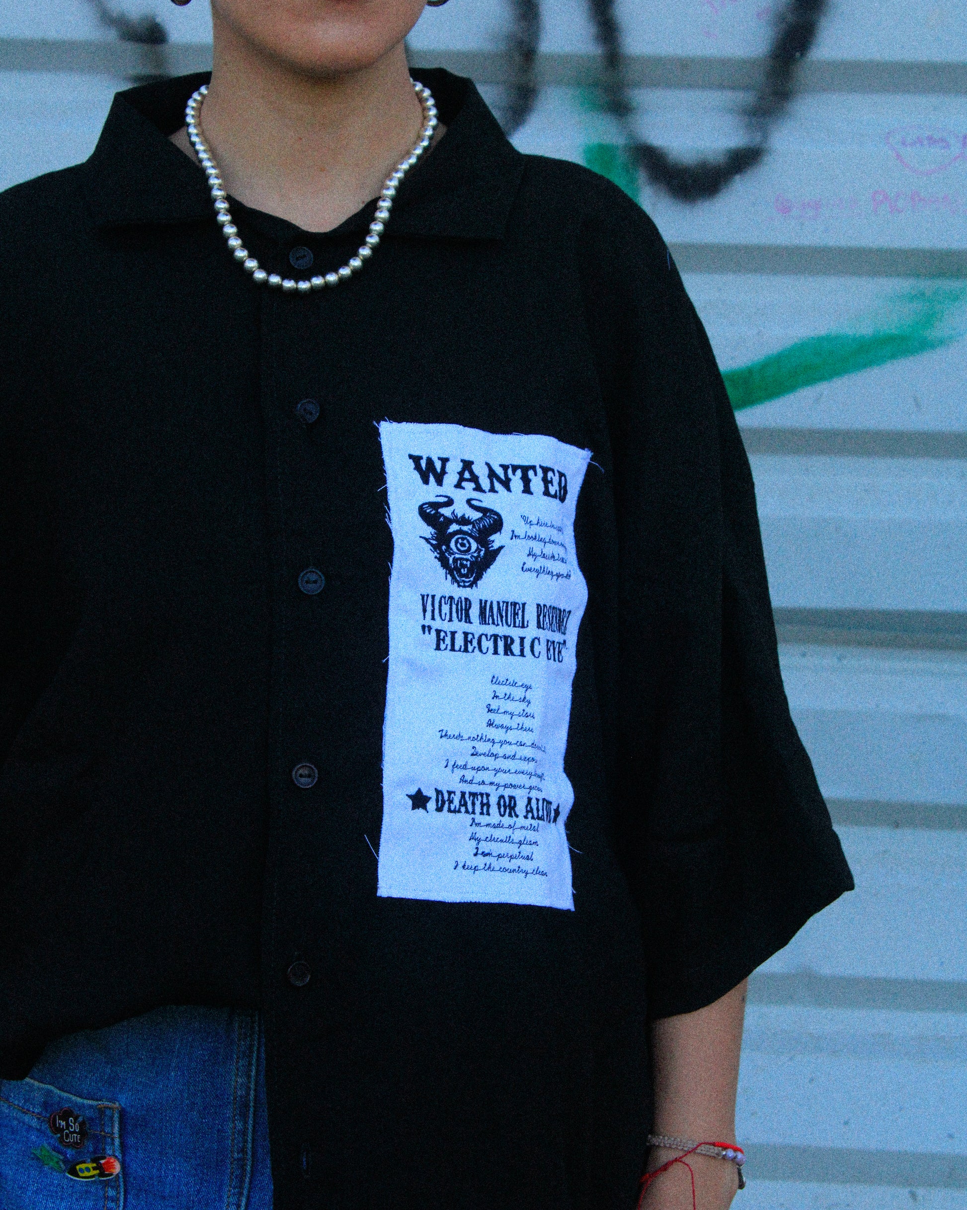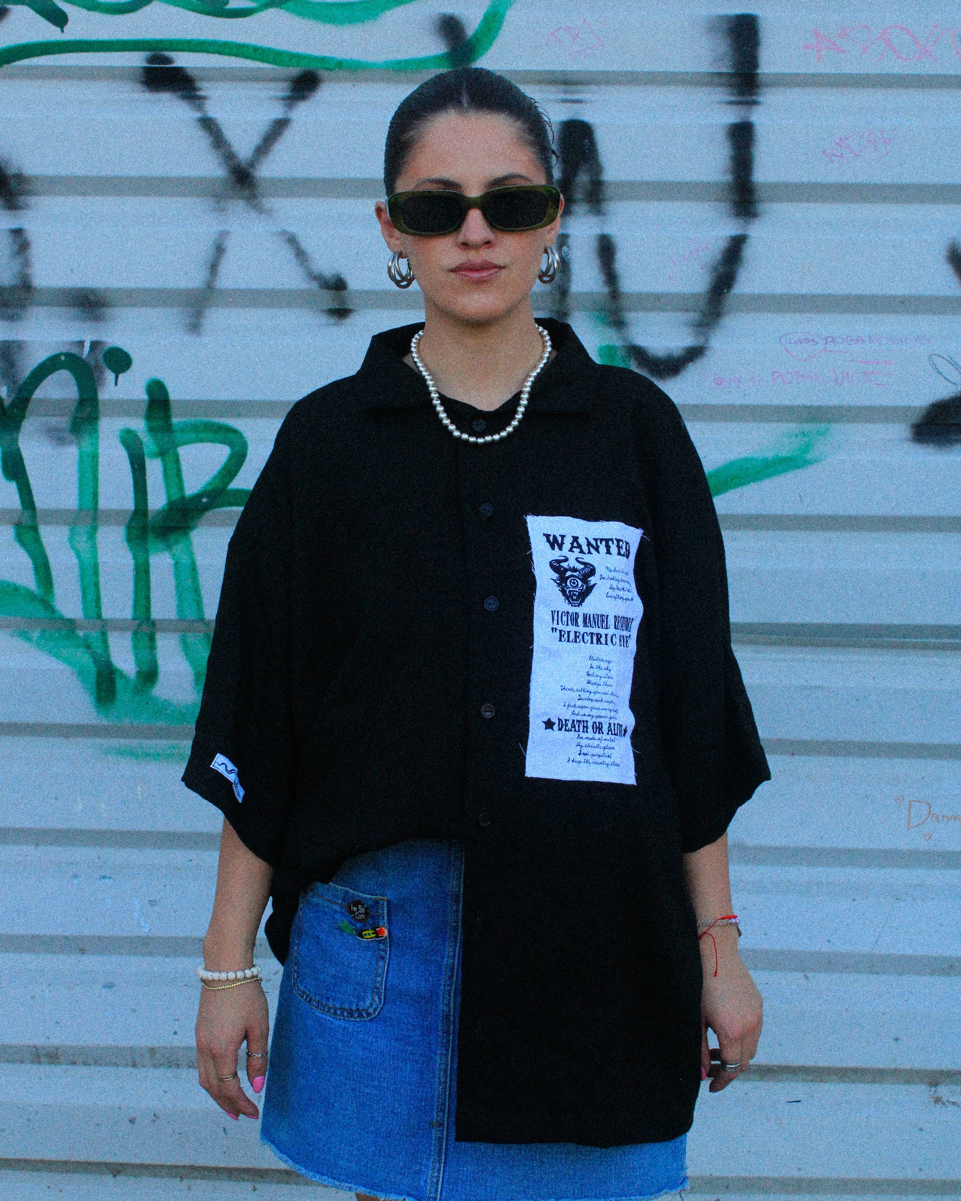 - Cuadro de Gabardina bordado con letras negras al frente.